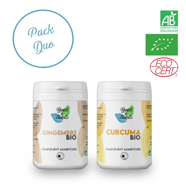 Un pack composé de gélules de Curcuma et de Gingembre.